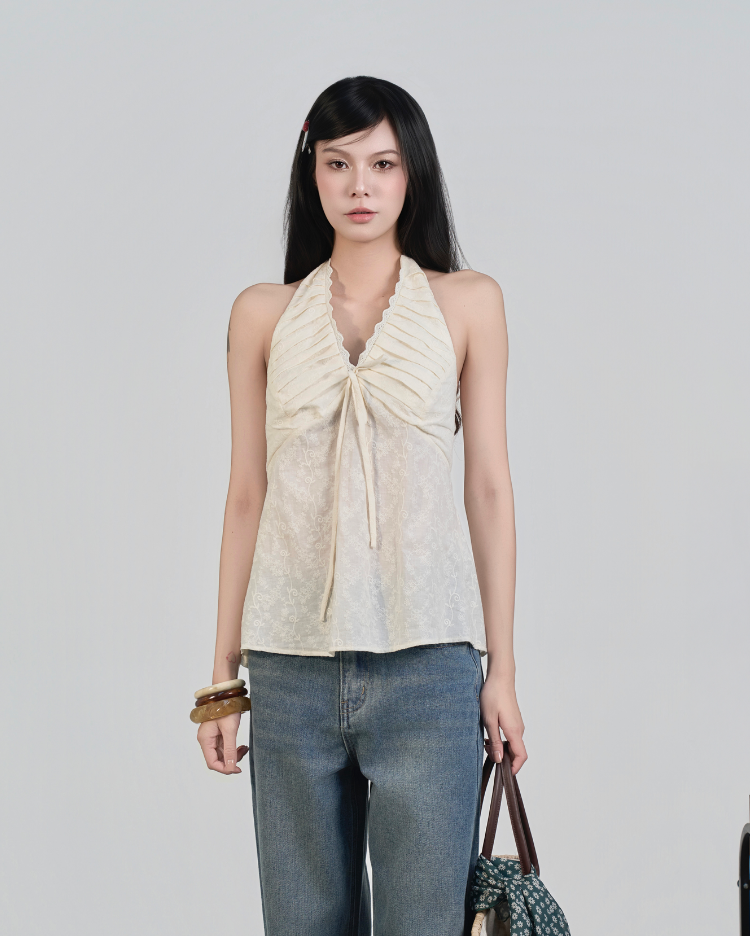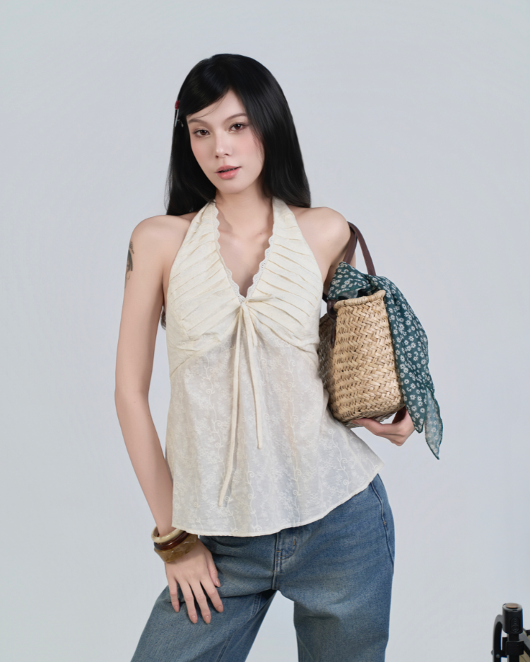 ✿ Sản phẩm : Áo yếm cổ xếp ly kem cổ sâu quyến rũ nữ tính Rami Miều Est.2013