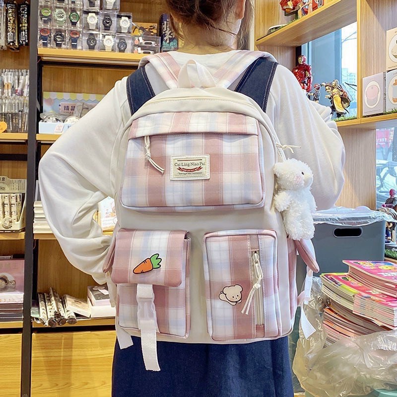 Túi Ví Nam > Ba lô || Balo caro tặng kèm 2 pin cài