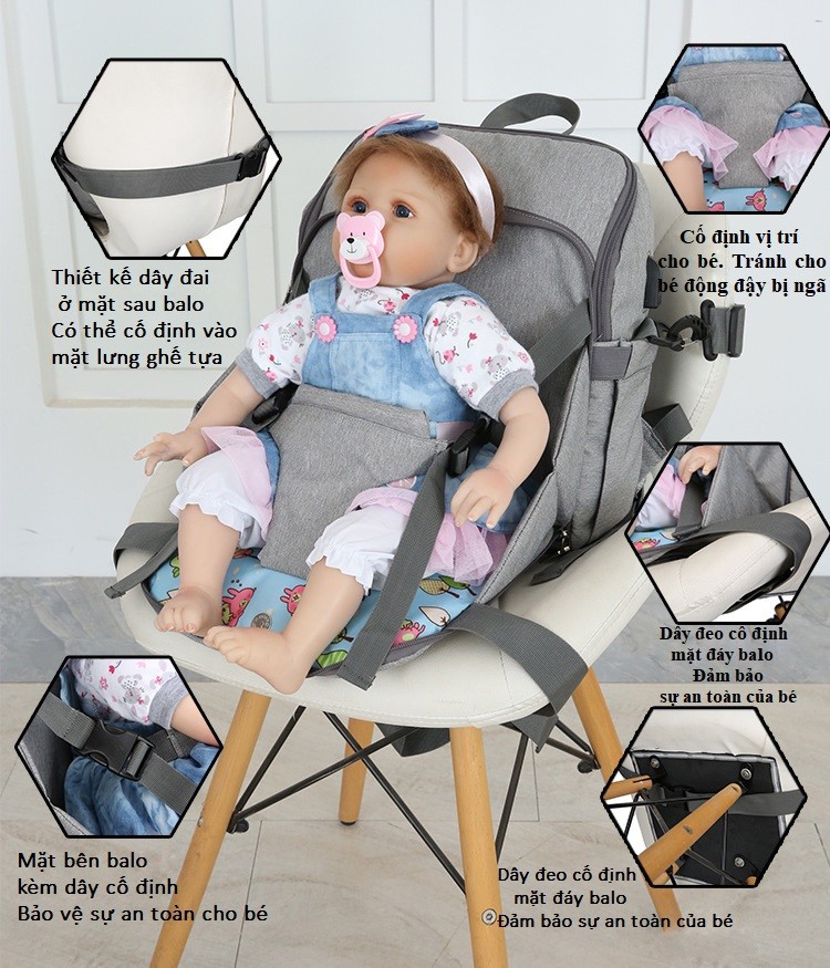 Balo có nhiều ngăn tiện dụng giúp bạn đựng được nhiều đồ vật cho bé.