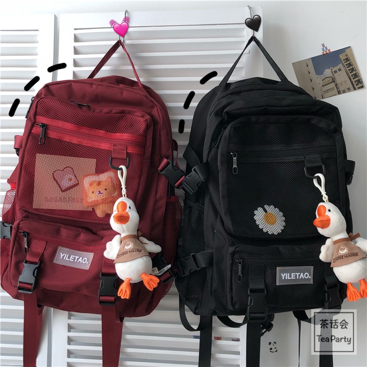 Balo Đi Học Thời Trang Unisex nam nữ nhiều ngăn Yiletao gồm 3 màu : đen - đỏ - kaki ( be)