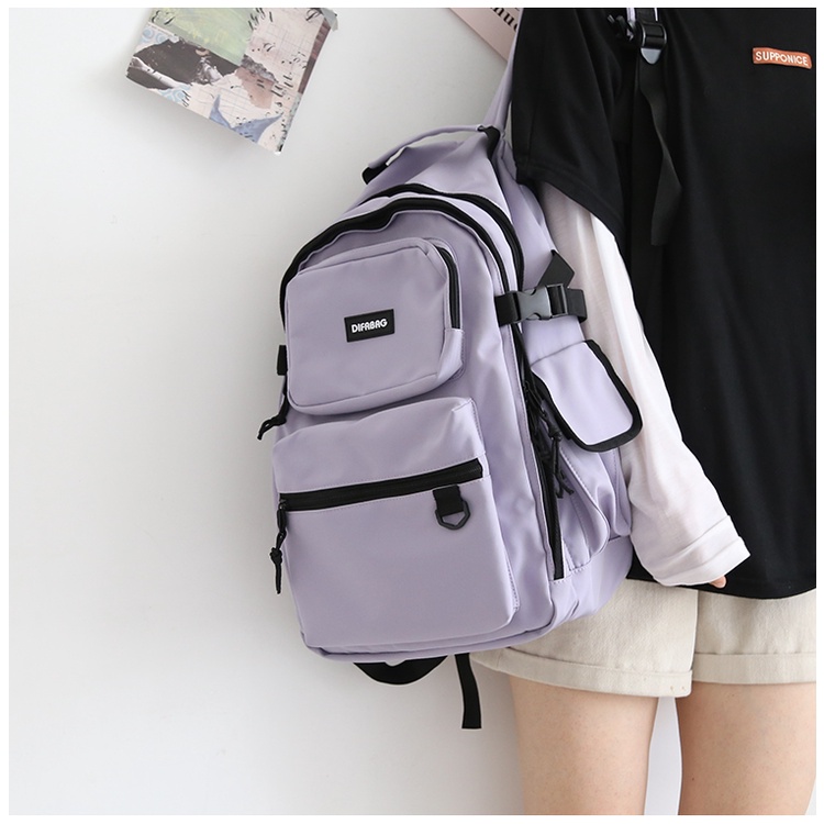 Giới thiệu Balo đi học unisex, cặp sách học sinh phong cách ulzzang hàn quốc tem difabag viền đen B229.