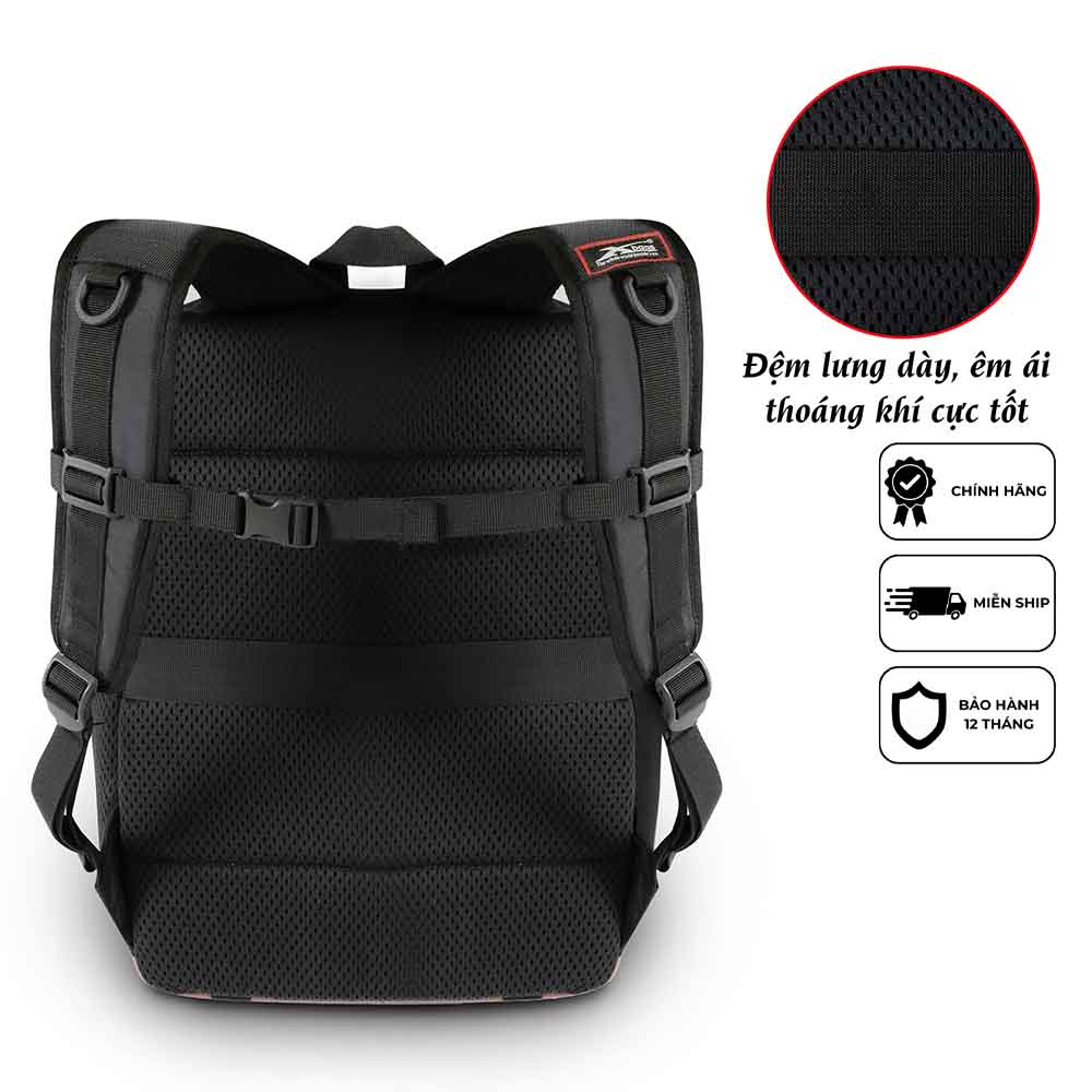 Quai đeo dễ dàng điều chỉnh kích thước, mặt lưng siêu thoáng khi và êm ái với đệm lưới Fresh air dày, hạn chế đau vai và mỏi lưng khi sử dụng.