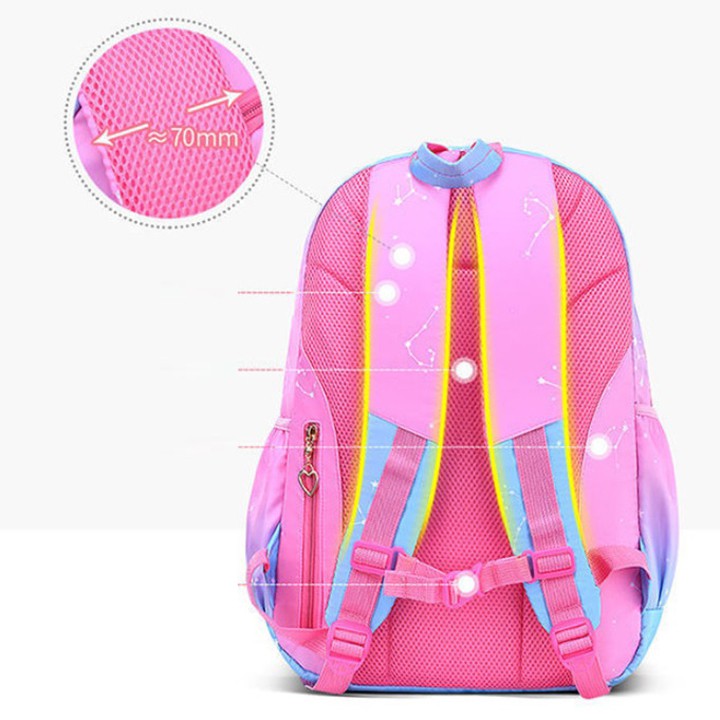 - Phía sau có đệm lót êm ái,Với họa tiết xinh xắn, vai đeo chắc và êm, khóa kéo mượt.