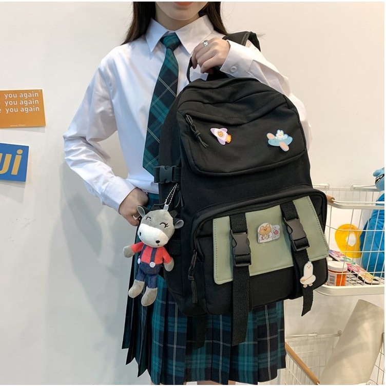 👉 Vậy thì không thể bỏ lỡ em Balo học sinh chống nước cá tính nhiều ngăn để đồ tiện lợi vải trơn phong cách tối giản này rùi ạ