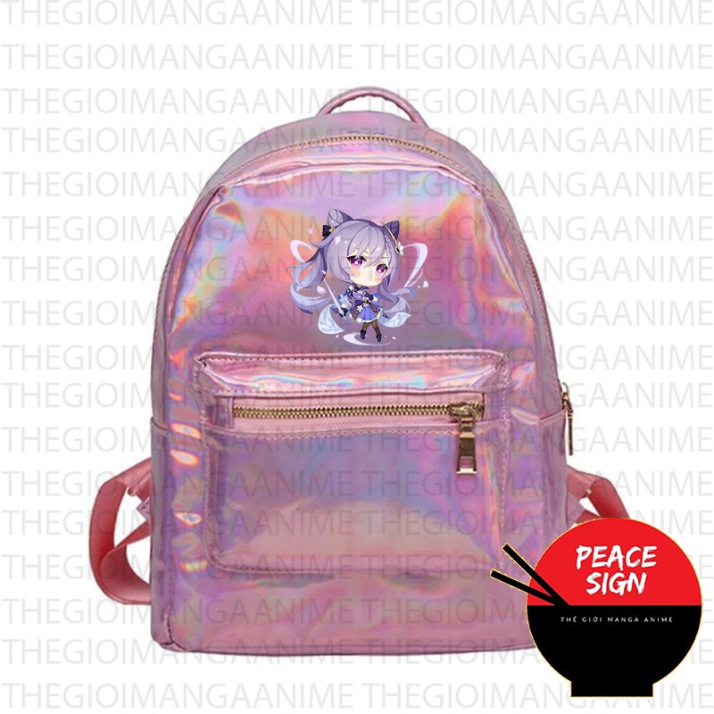 Balo hologram hồng in hình NHÂN VẬT GENSHIN IMPACT game chibi anime thời trang M1