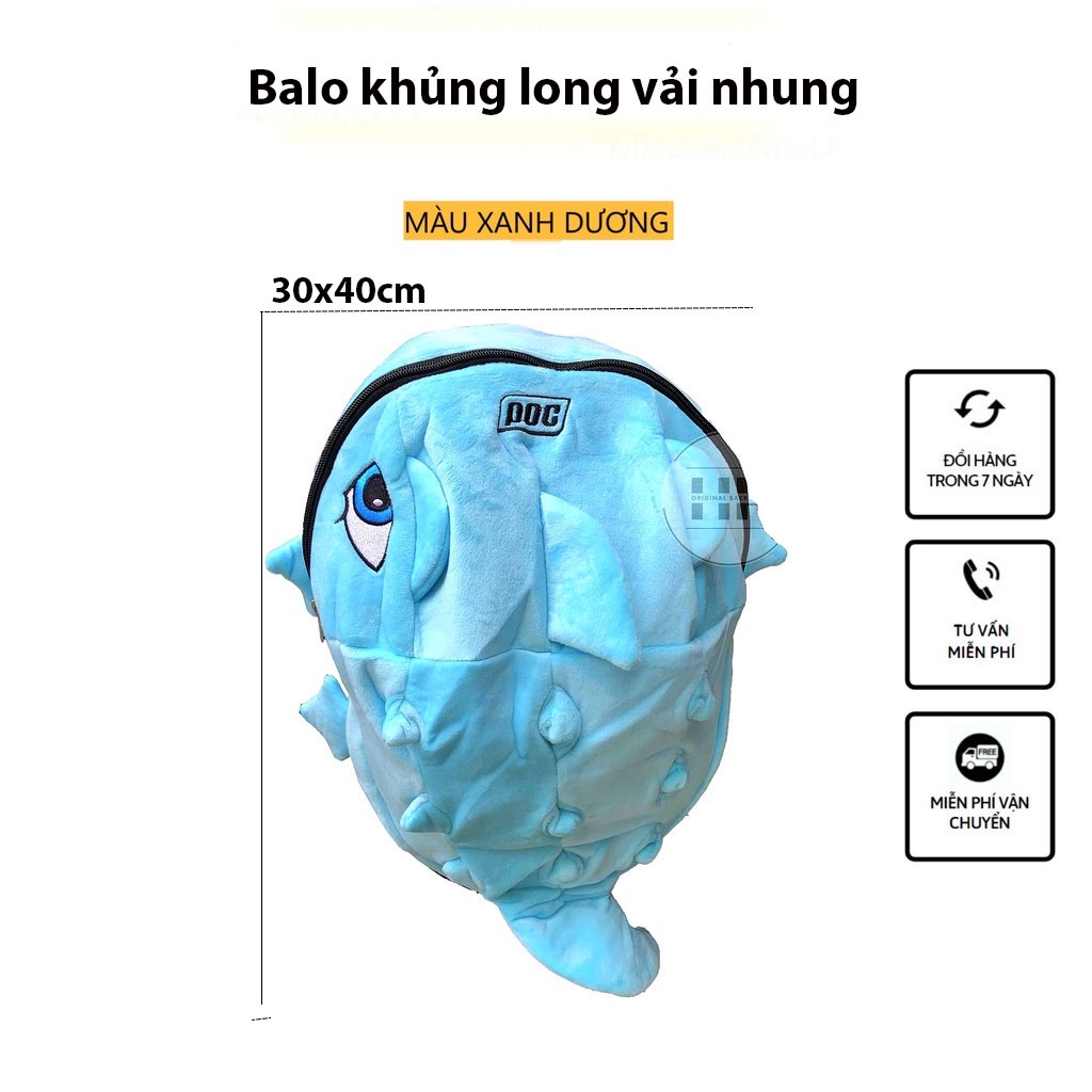 Giới thiệu Balo khủng long vải nhung màu xanh biển cỡ lớn