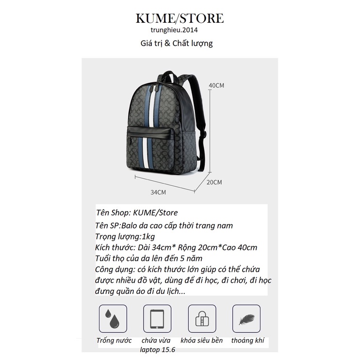 Giới thiệu Balo nam nữ da thời trang ulazzang lv cao cấp trống thấm nước họa tiết đi học du lịch đựng laptop 15.6
