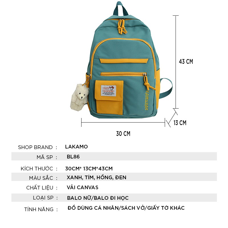 Giới thiệu Balo nữ cá tính đẹp đi học thời trang cao cấp dễ thương LUKAMO BL86 ( không có móc khóa gấu )