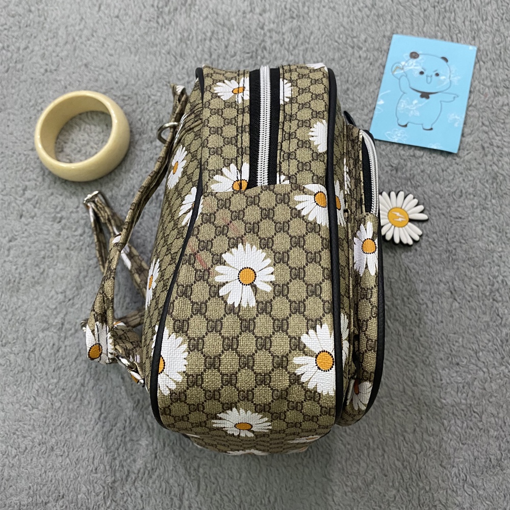 * Chất liệu da tổng hợp không bong tróc tự nhiên và không thấm nước. Lớp lót bên trong balo làm bằng vải mềm mại.
