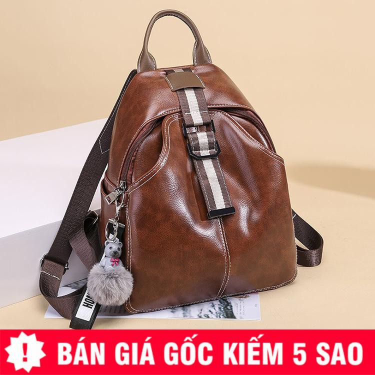Túi Ví Nữ > Ba lô || Balo Phối Khóa Dây Sọc Tặng Cục Bông P990
