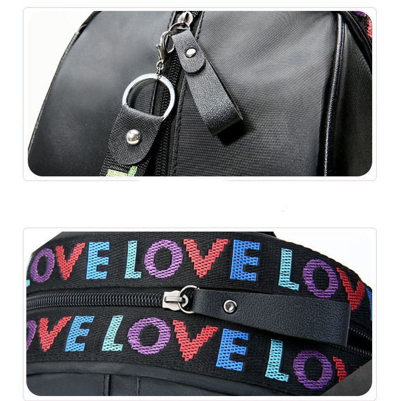 Balo thời trang chữ LOVE tặng móc khóa chuột siêu cute trẻ trung hiện đại phong cách Hàn Quốc