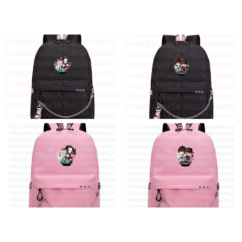 Giới thiệu Balo thông minh đen hồng in hình BUNGOU STRAY DOGS VĂN HÀO LƯU LẠC chibi anime cặp sách đi học