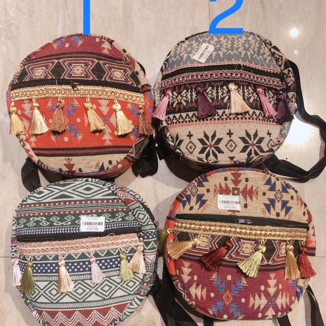 Túi Ví Nữ > Ba lô || Balo tròn tua rua thổ cẩm 22x22