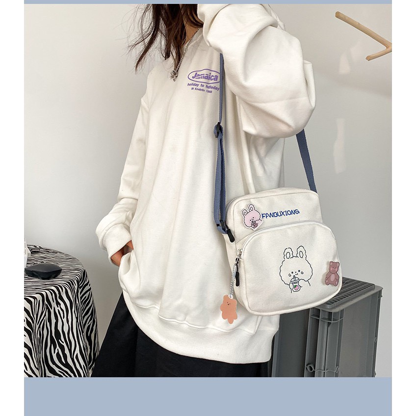 Balo vải đeo chéo nữ hình gấu giá rẻ TV98