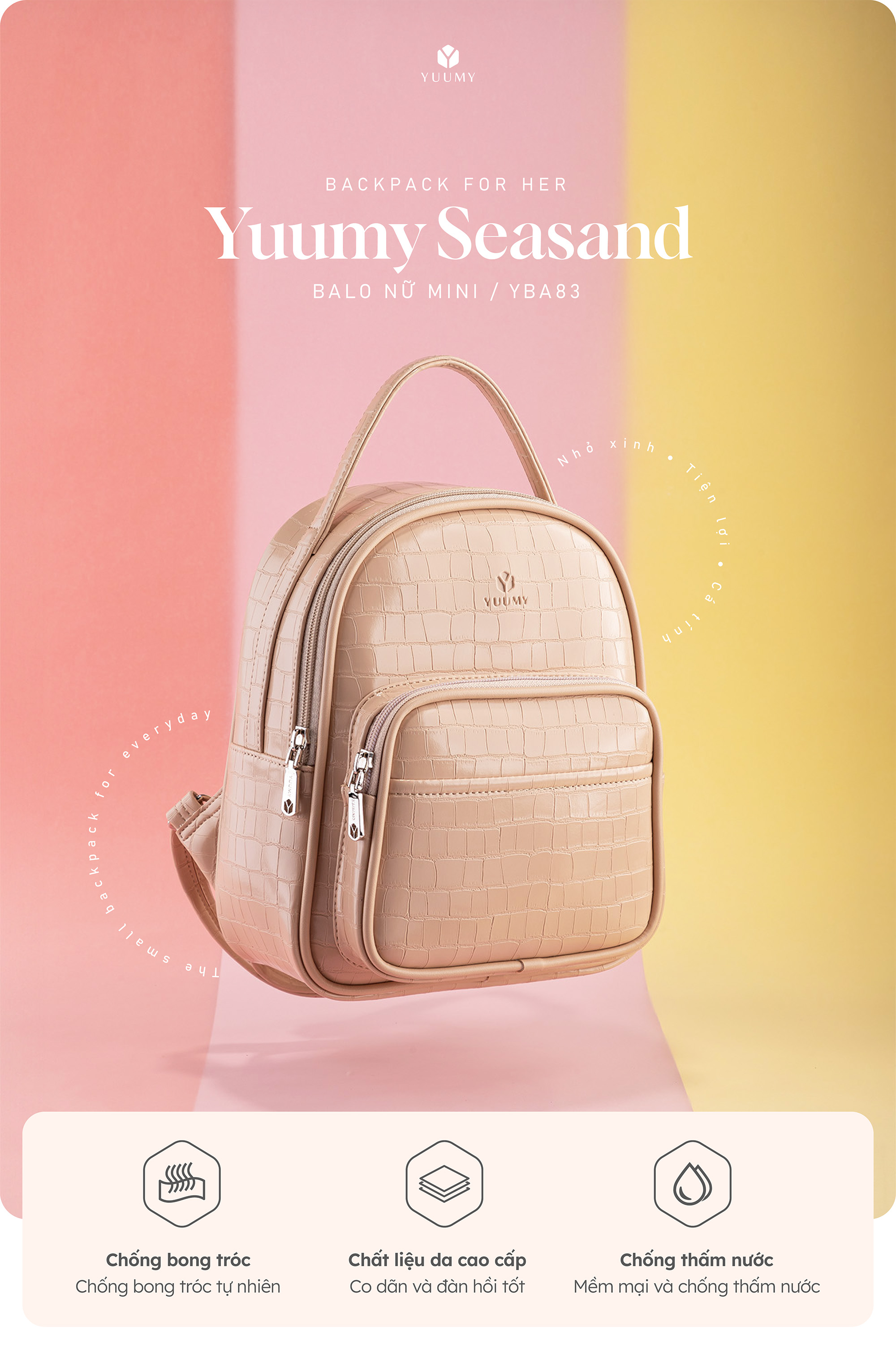 YBA83 lấy cảm hứng từ nghệ thuật sống tối giản, pha trộn các chi tiết hiện đại với sự tinh tế và trang nhã. Được làm từ chất liệu da tổng hợp cao cấp, thiết kế kiểu dáng bo tròn xinh xắn, nữ tính. Ngăn chính chứa được nhiều đồ dùng cá nhân như: ví tiền, điện thoại, sổ tay, mỹ phẩm… Phần viền balo phối màu lạ mắt, tạo nét độc đáo riêng cho sản phẩm. Balo có 3 gam màu cơ bản dễ phối với nhiều trang phục khác nhau.