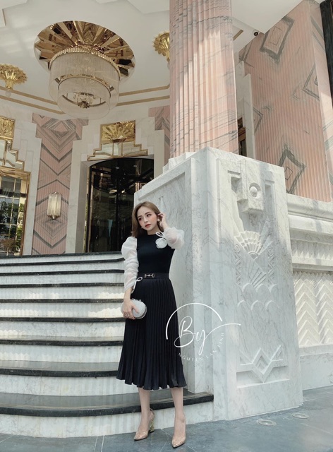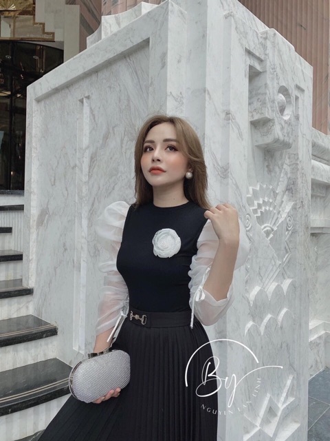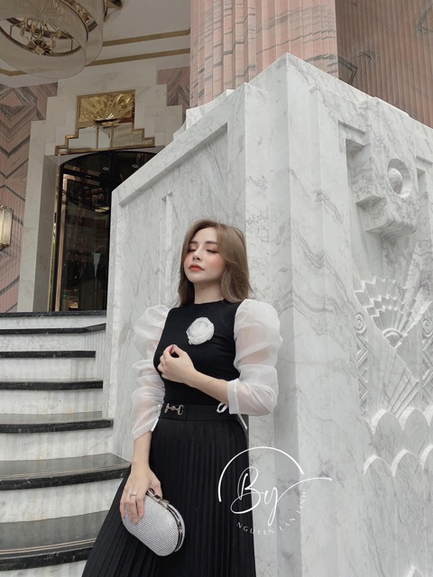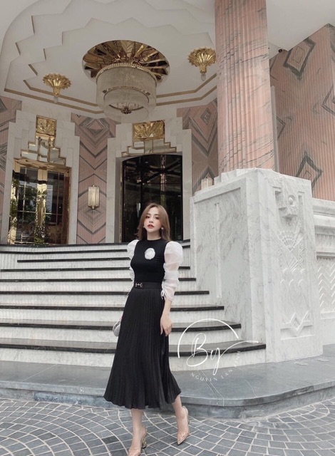 BÁN SỈ ÁO LEN PHA TAY VOAN KÈM HOA CHO NỮ