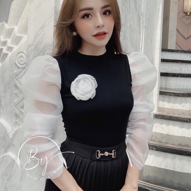 Thời Trang Nữ > Áo > Áo sơ mi || BÁN SỈ ÁO LEN PHA TAY VOAN KÈM HOA CHO NỮ