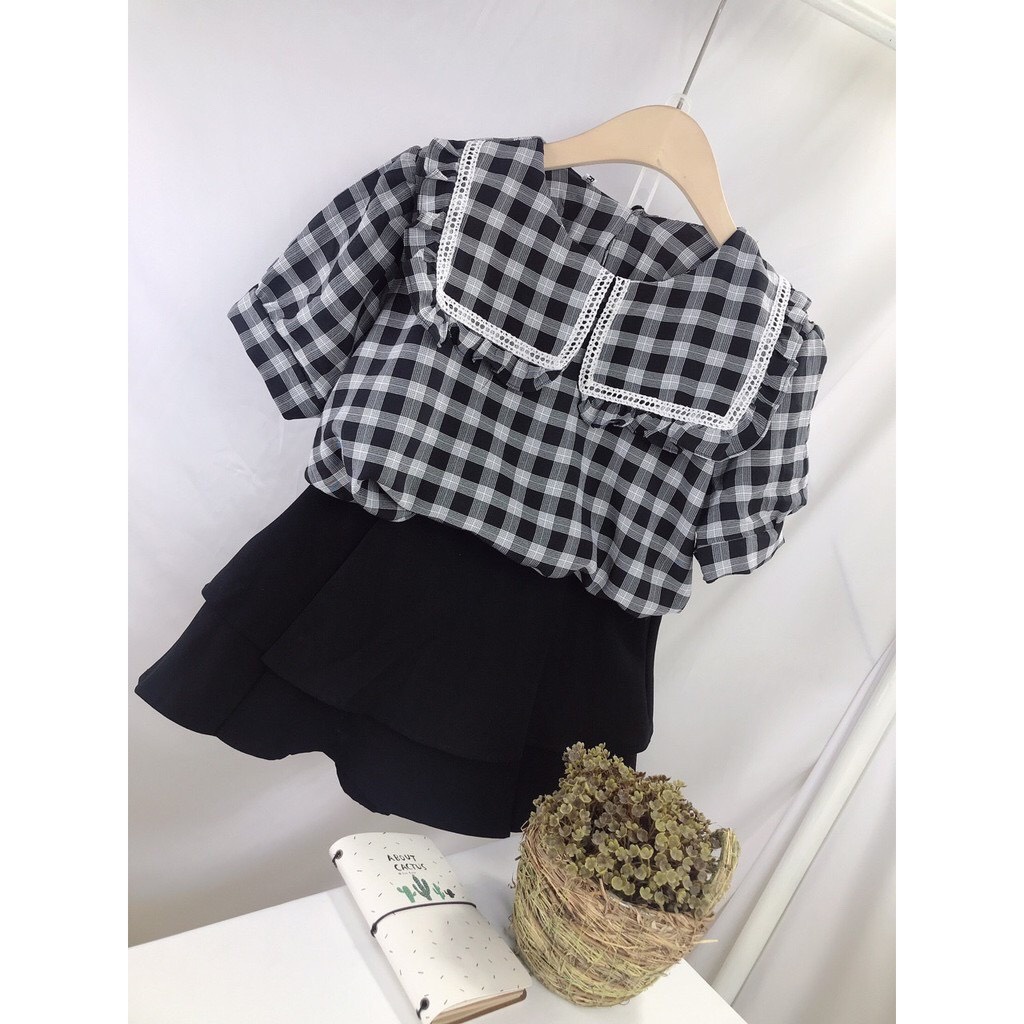 Thiết kế:Áo Sơ mi cổ thủy thủ viền bèo tay ngắn bồng