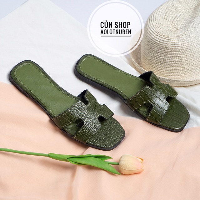 Giày Dép Nữ > Xăng-đan và dép > Xăng-đan đế bằng || (Có bảo hành) Dép chữ H da cá sấu mũi vuông LIKANO DEP08
