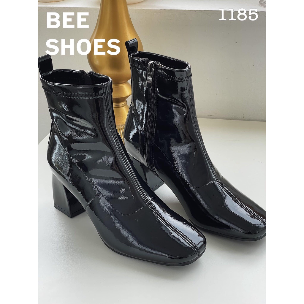 Giới thiệu BEESHOES - BOOT NỮ BÓNG DA MỀM MŨI VUÔNG - BOOT NỮ GÓT ĐẾ TRỤ CAO 5CM CÓ SẴN MÀU ĐEN - KEM 201185