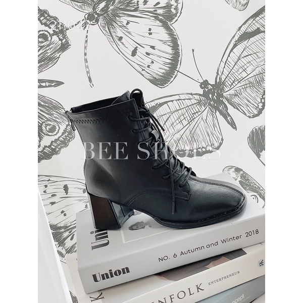 Giới thiệu BEESHOES - BOOT NỮ BUỘC DÂY DA MỀM MŨI VUÔNG - BOOT NỮ ĐẾ TRỤ CAO 5CM CÓ SẴN MÀU ĐEN - KEM 211043