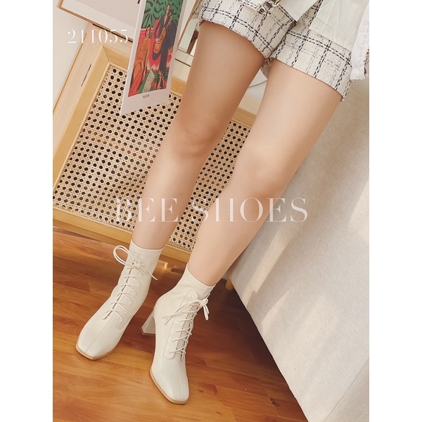 Giới thiệu BEESHOES - BOOT NỮ BUỘC DÂY DA MỀM MŨI VUÔNG - BOOT NỮ ĐẾ TRỤ CAO 7CM CÓ SẴN MÀU ĐEN - KEM 211055