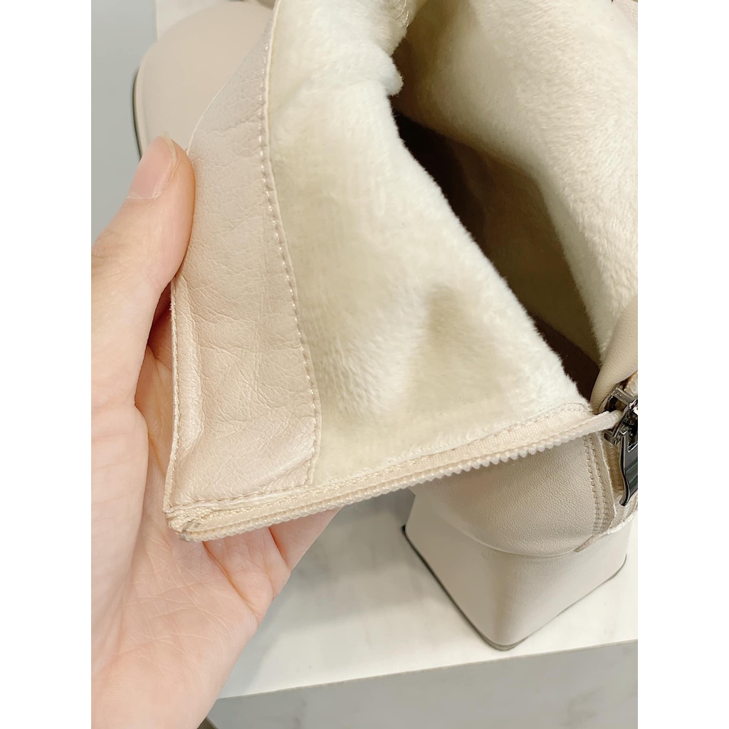 BEESHOES - BOOT NỮ NHĂN DA MỀM MŨI VUÔNG - BOOT NỮ GÓT ĐẾ TRỤ CAO 5CM CÓ SẴN MÀU ĐEN - KEM 210106