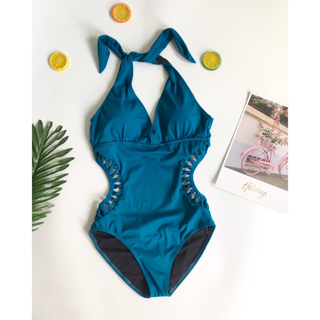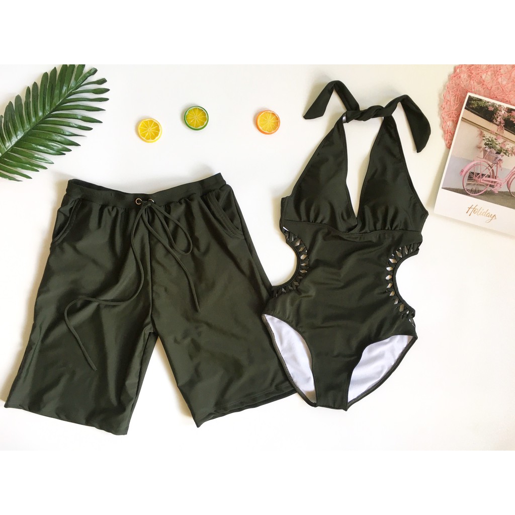 Thể Thao & Dã Ngoại > Thời Trang Thể Thao & Dã Ngoại > Đồ Bơi > Đồ Bơi Một Mảnh || Bikini cặp xanh rêu cut-out phối ziczac