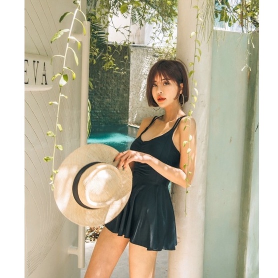 Giới thiệu [BIKINI VÁY LOẠI ĐẸP] Đồ bơi 1 mảnh váy xoè đi biển kín đáo màu đen (hàng Quảng Châu cao cấp)