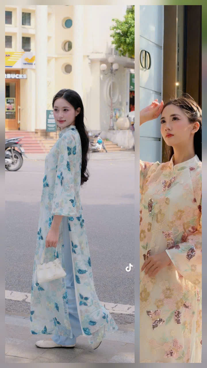 BỘ ÁO DÀI NỮ CÁCH TÂN KIM SA HỒ ĐIỆP – BƯỚM HỒNG & BƯỚM XANH