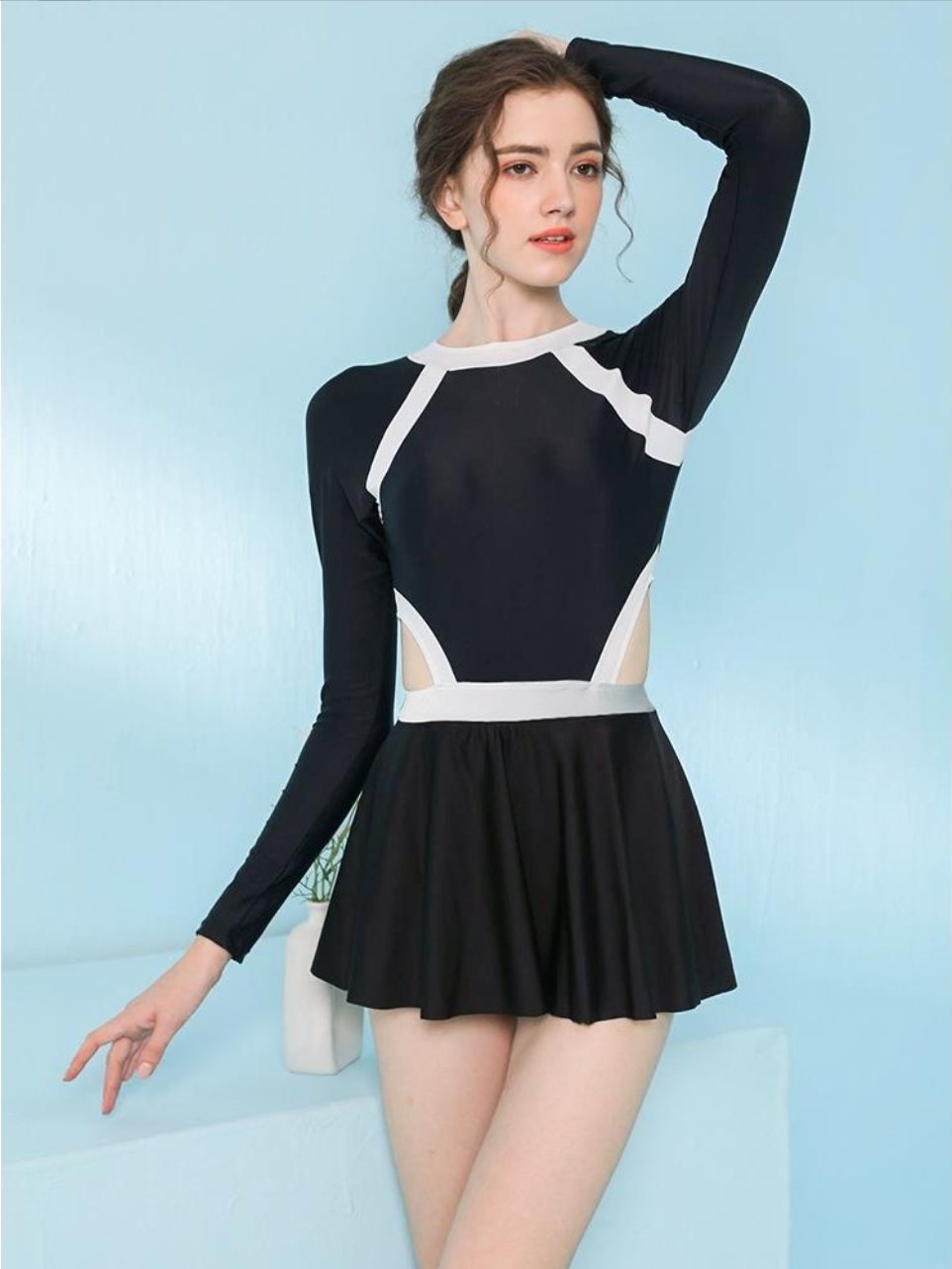 - Set gồm: váy liền (có quần đùi bên trong), áo tay dài che nắng