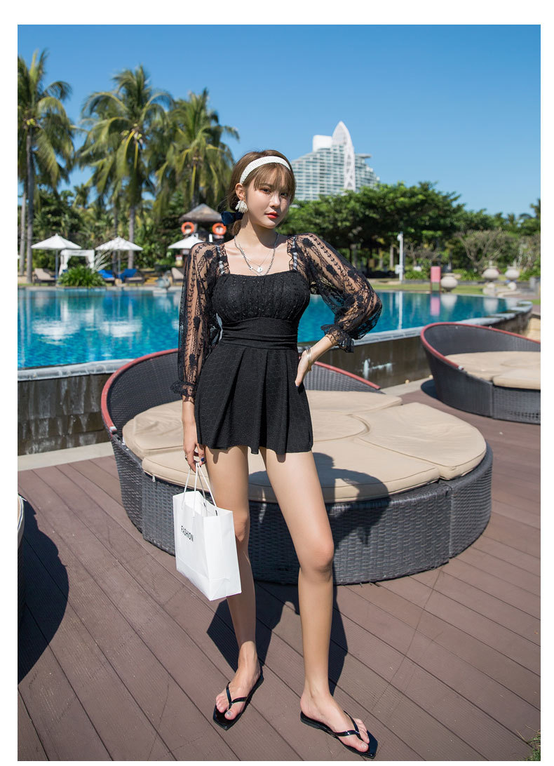 - Mẫu đồ bơi size lớn cho người mập với phong cách gợi cảm trẻ trung, tay ren quyến rũ.