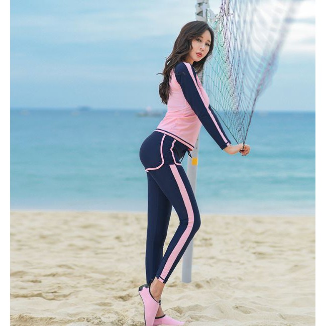 Thể Thao & Dã Ngoại > Thời Trang Thể Thao & Dã Ngoại > Đồ Bơi > Áo Bơi Kín || Bộ đồ bơi tay dài chống nắng nữ màu hồng quyến rũ 40-57kg