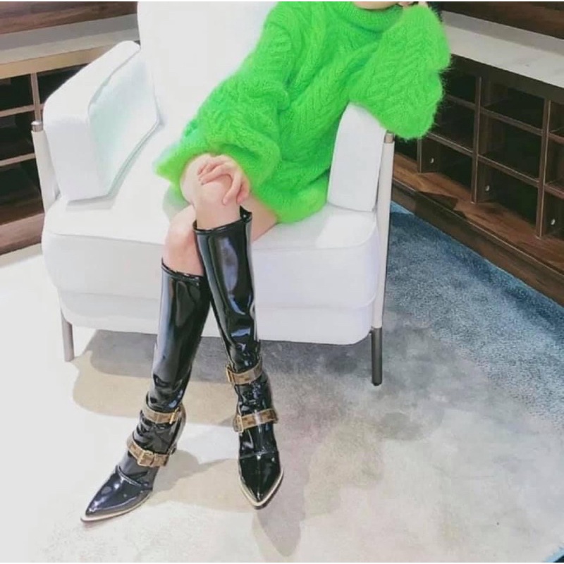 Giới thiệu boot nữ bốt cổ cao gót nhọn mũi fendi da bóng thời trang boots gối lửng (fullbox loại 1)