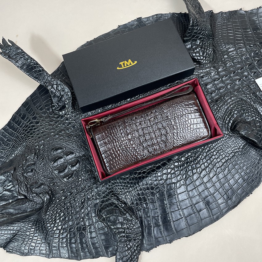 Bóp Cá Sấu Ví Dài Nam Nữ Da Cá Sấu Thật 100% Màu Nâu Đất SN01 BH 24 Tháng Full Hộp Như Hình