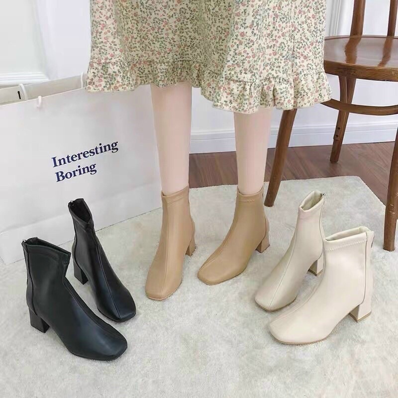 Bốt cổ nhỡ da mịn kẻ chỉ vát, form gọn đi rất tôn dáng, phong cách trẻ trung năng động