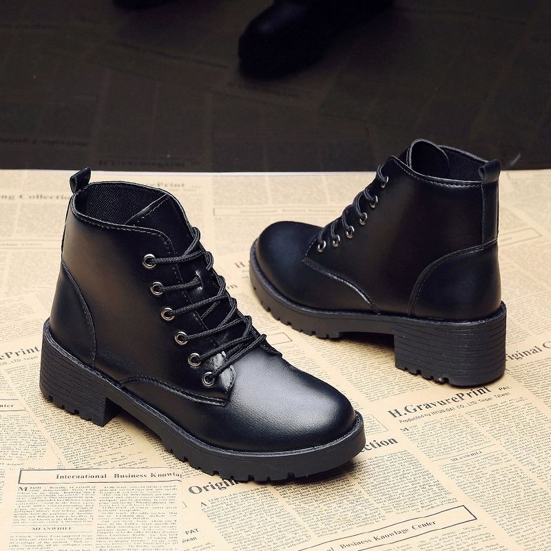 Giới thiệu Bốt Martin Cao Cổ Nữ Dây Buộc Retro Đế Cao 5cm