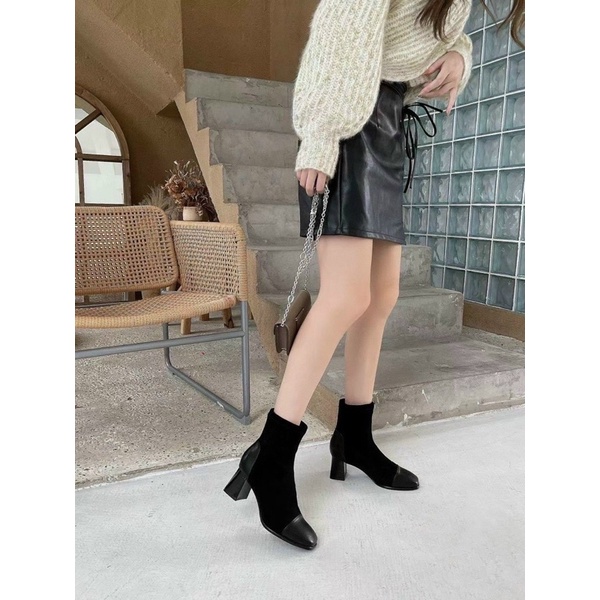 Giày Dép Nữ > Bốt > Bốt thời trang || Bốt mũi vá da lộn gót 6p