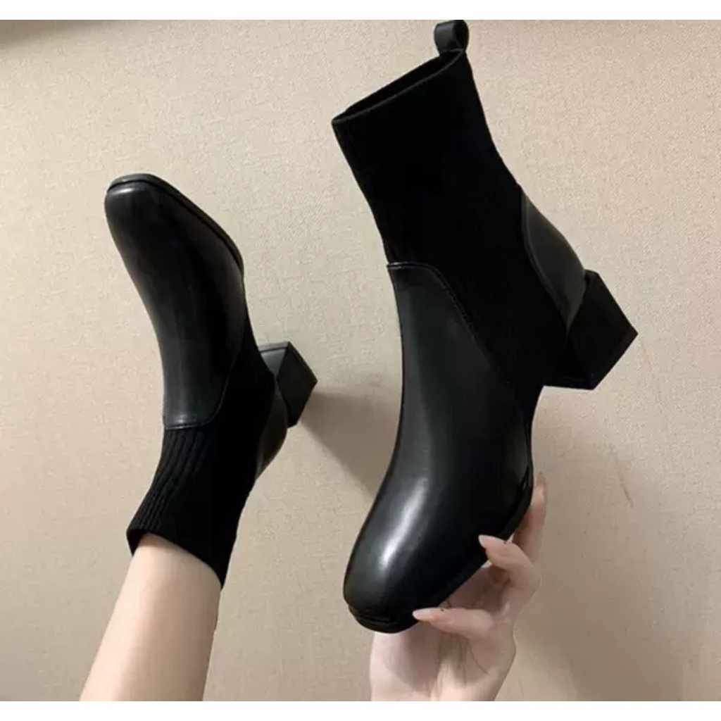 Tên sản phẩm: Bốt nữ cao cổ gót vuông 5 cm Chunki giày ống da cổ điển