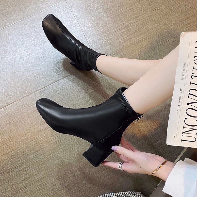 Bốt nữ cổ lửng kéo khóa vạt lệch 2021-full box 3 màu