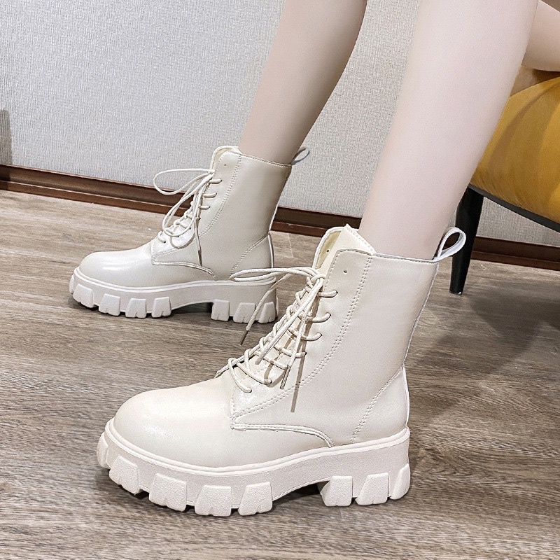 Giới thiệu Bốt ulzzang bốt nữ đế răng cưa phong cách hai màu đen trắng
