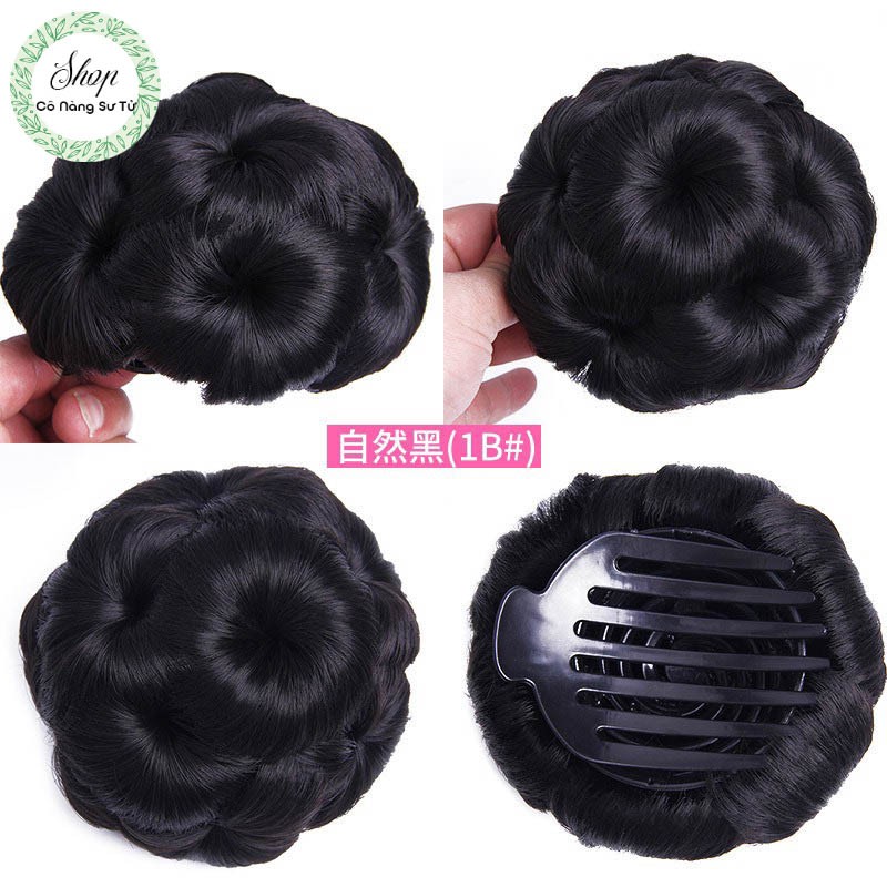 - Búi tóc giả làm từ sợi tơ nhân tạo nhập khẩu cao cấp siêu nhẹ, không bám mùi, bám bụi, đặc biệt dễ vệ sinh, Chỉ cần dùng tay vuốt nhẹ. Có thể gội (nhuộm không ăn màu)