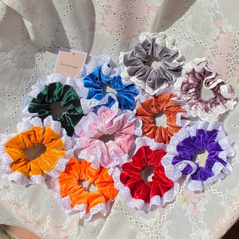 Giới thiệu Đồ buộc tóc scrunchies nhung phối ren thiết kế✨