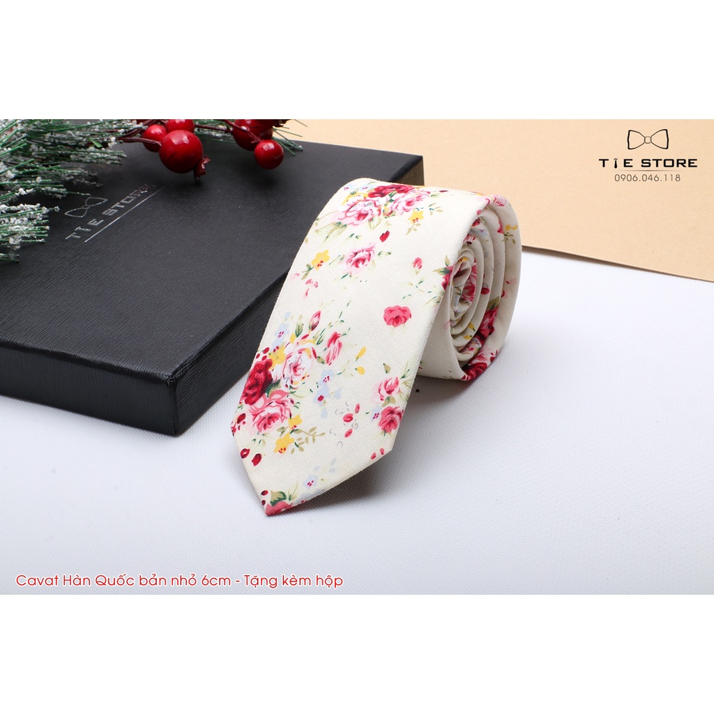 Giới thiệu Cà Vạt Nam Bản nhỏ 6cm Màu kem hoa - Cavat Hàn Quốc Dành Cho Chú rể, Công Sở Cao Cấp Full box