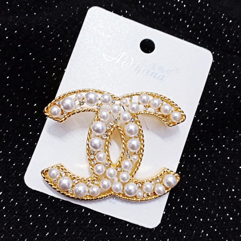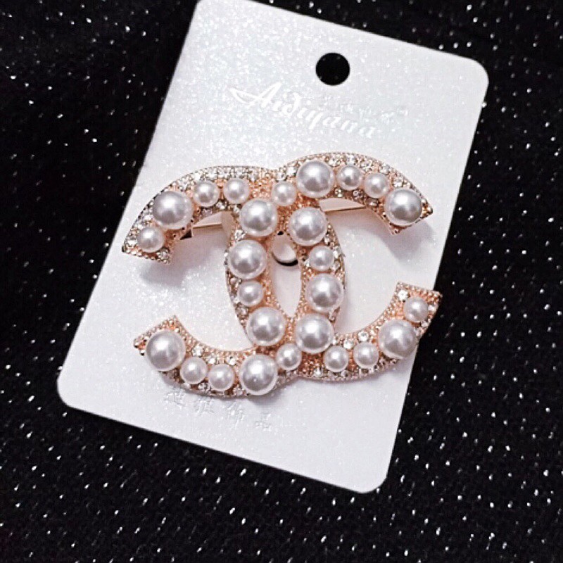 🔹cài áo hình chữ CC,đính đá và hạt ngọc