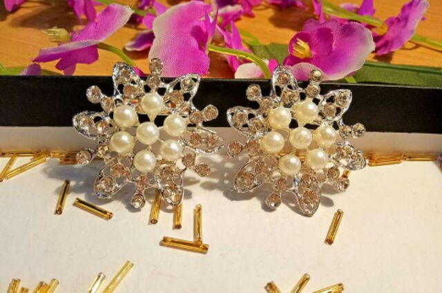 Cài áo đính đá, đính ngọc, quả bông