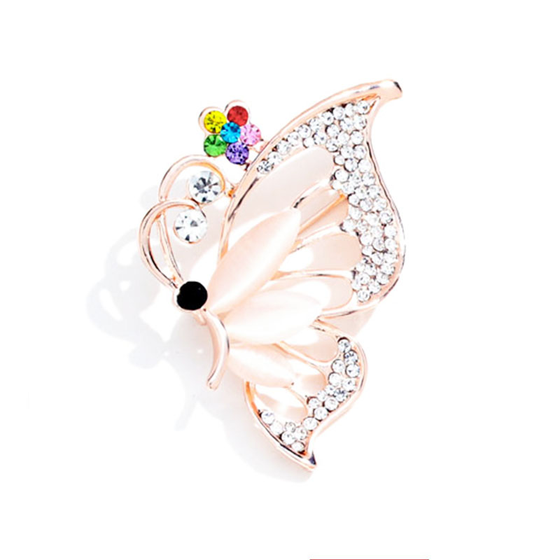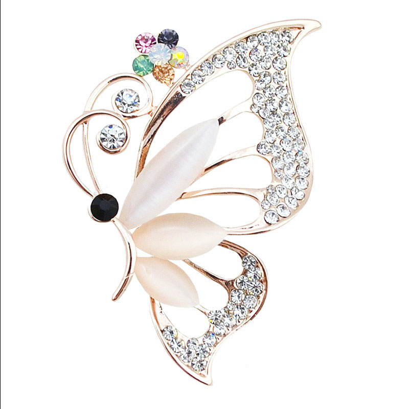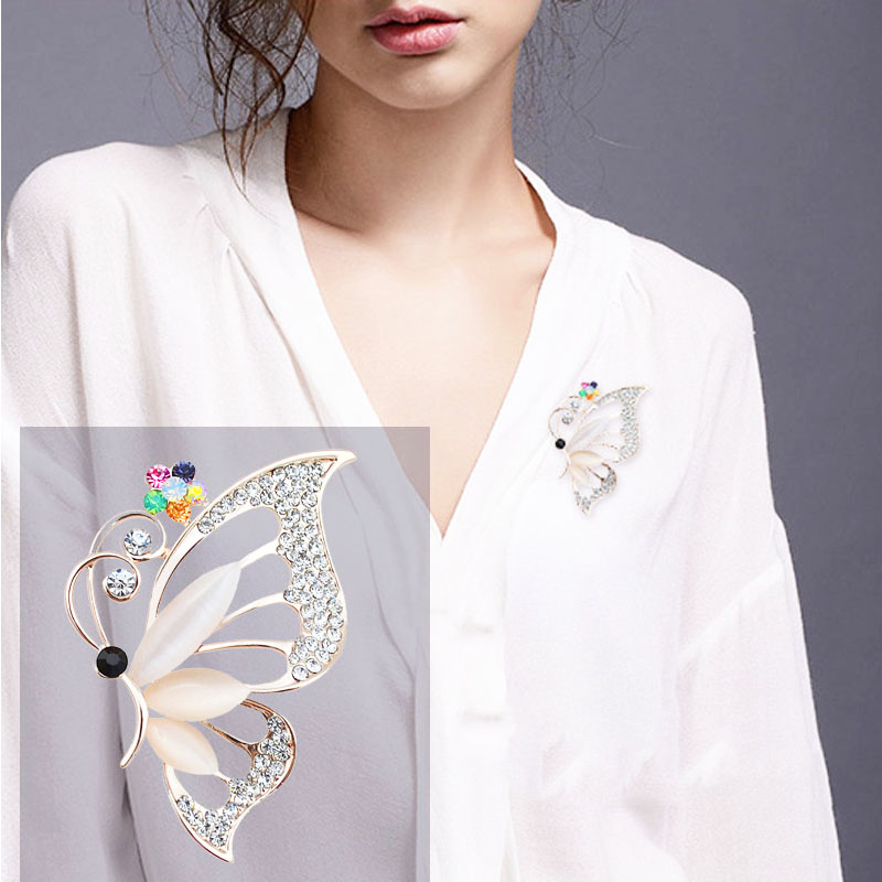 Trâm Cài Áo Nữ Quà Tặng Bươm Bướm Đính Đá Trắng Trang Nhã Sang Trọng (Kèm Hộp Quà Tặng)