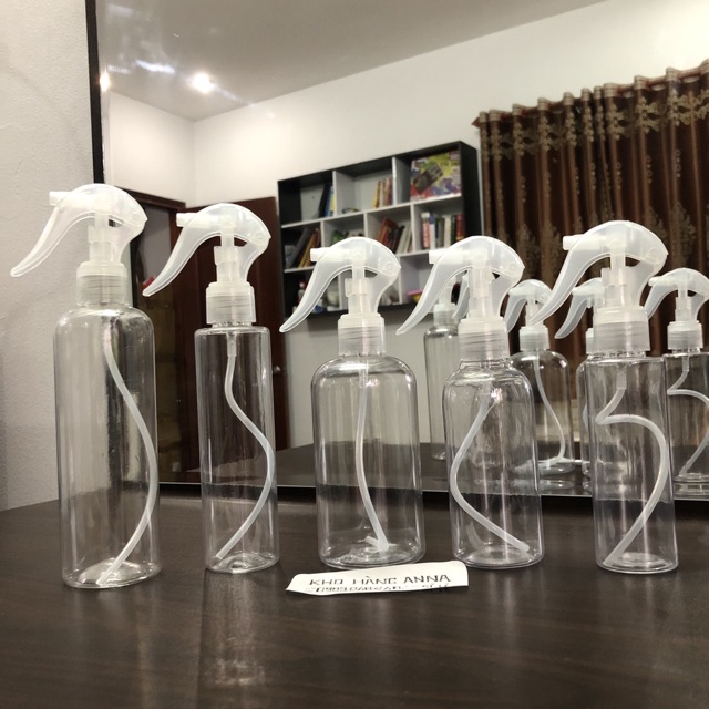 Chai nhựa Pet trong suốt 500ml/ 300ml/ 200ml/ 250ml/ 150ml/ 100ml- vỏ Chai nhựa trong suốt vòi nhấn, xịt sương, nắp đen