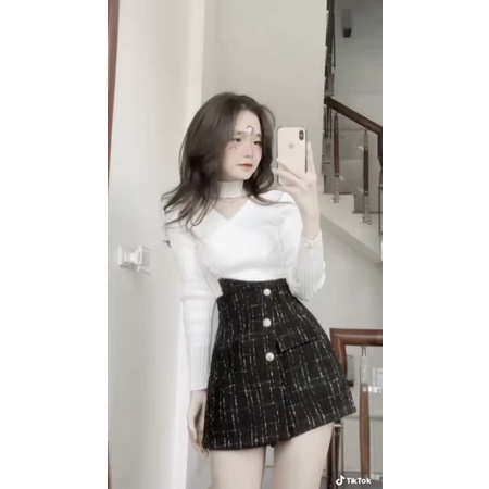 🌷Chân váy dạ xịn xò dày dặn, thiết kế quần bên trong nên ce mặc tự tin k sợ lộ nha