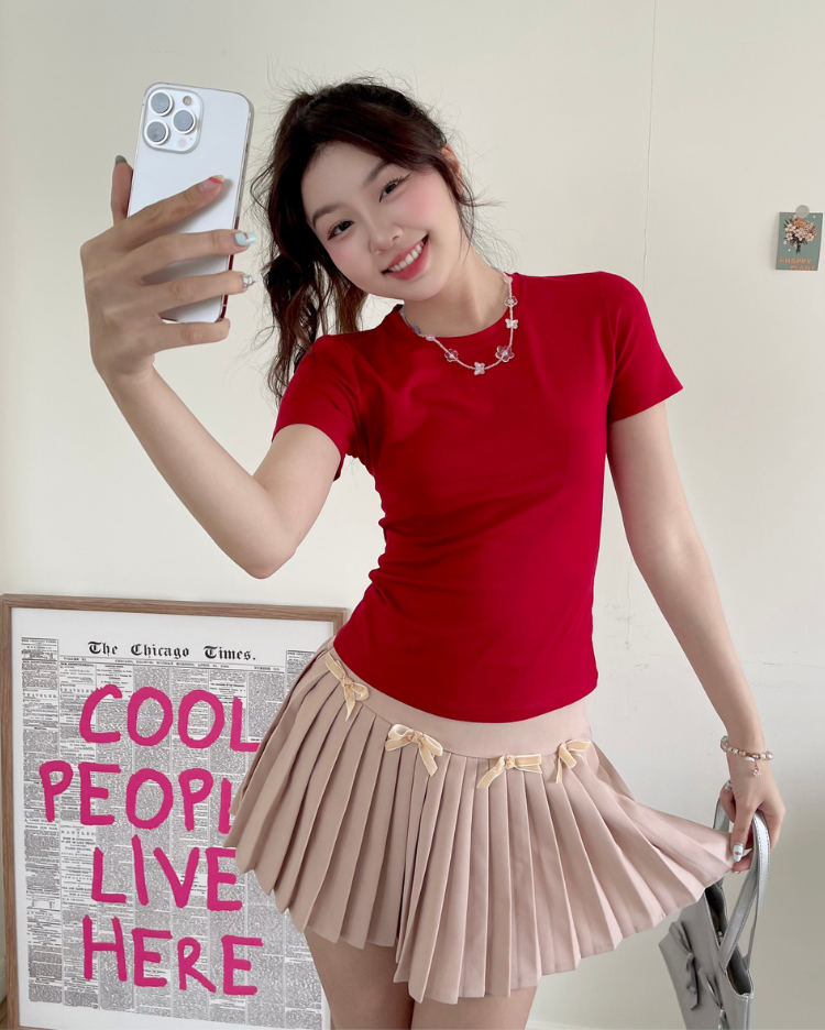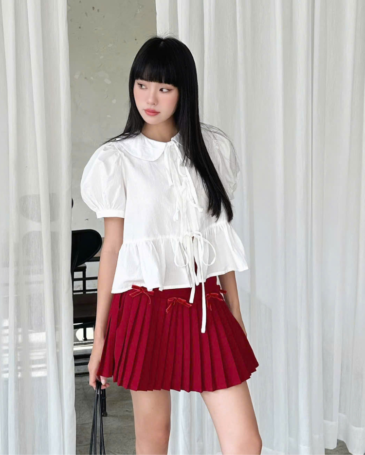 ✿ Sản phẩm : Chân váy ngắn chân váy đính nơ xếp ly Bluebell Miều Est.2013